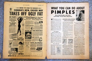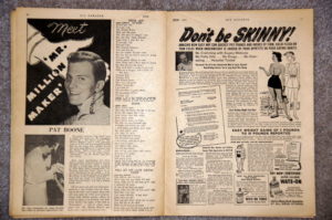 There is a full page ad pushing “Wate-On” the fortified, super calorie, solution for the underweight. Imitation diamonds are now only a $1. The bust cream ads are gone and there are lots of ads for photo enlargement.